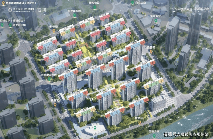 项目规划有 6所幼儿园,十二期斜对面就是已开学的 西大街小学直属校区——国博校区,旁边的 国博高中已开工,家门口实现15年教育闭环。