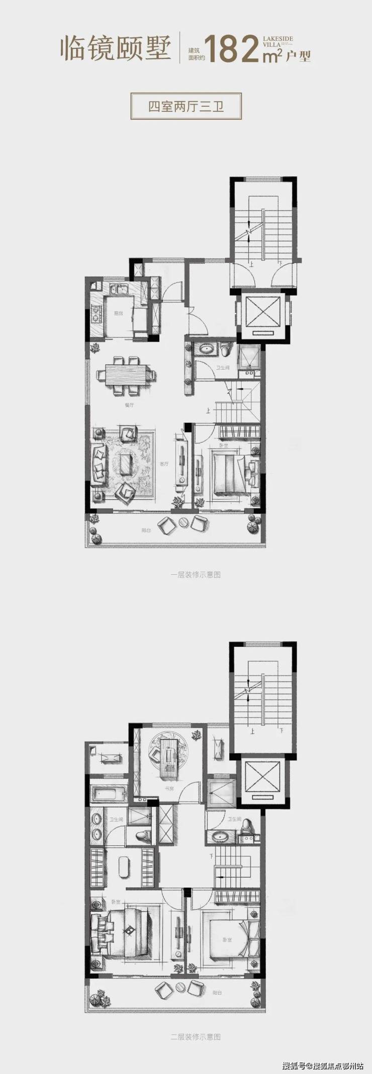 “临镜颐墅”户型,建筑面积182㎡,4房2厅3卫: