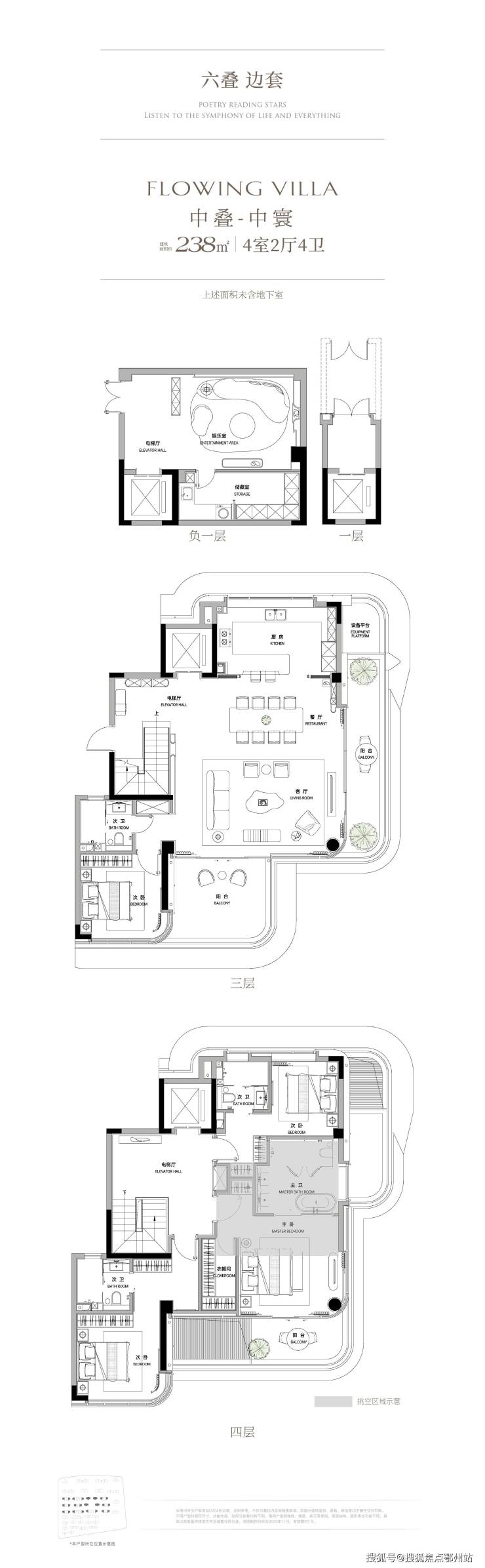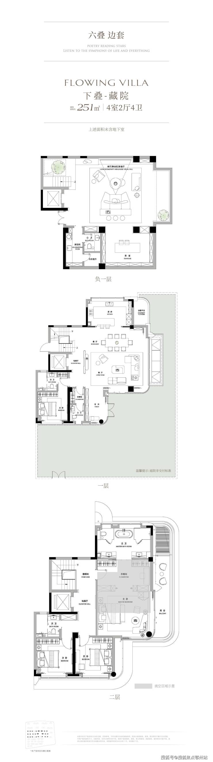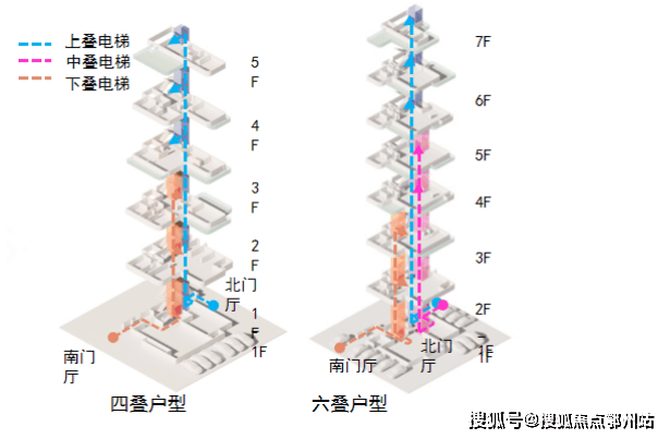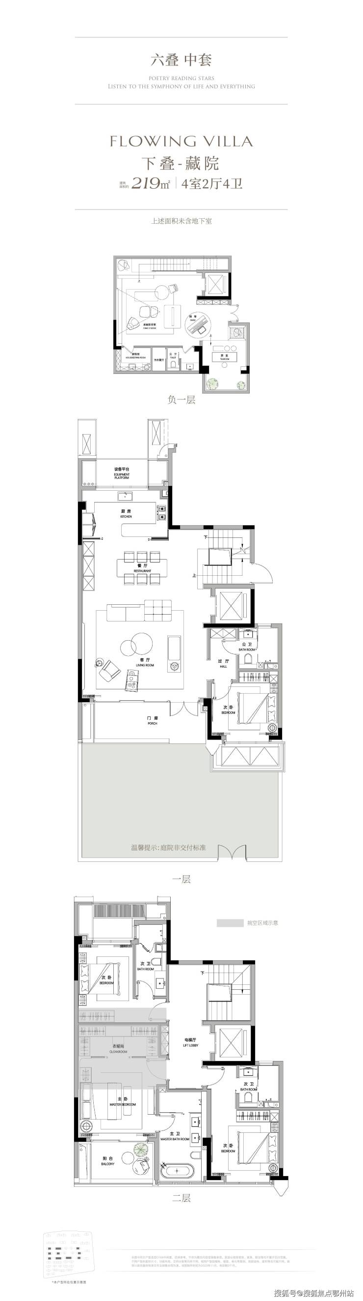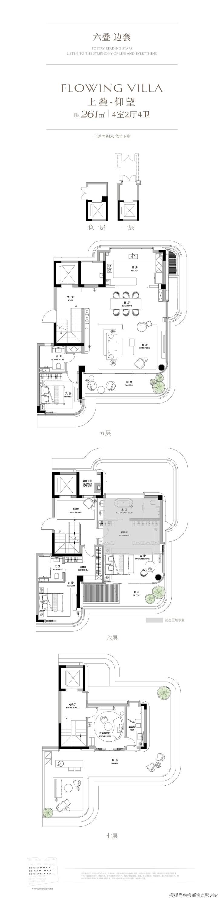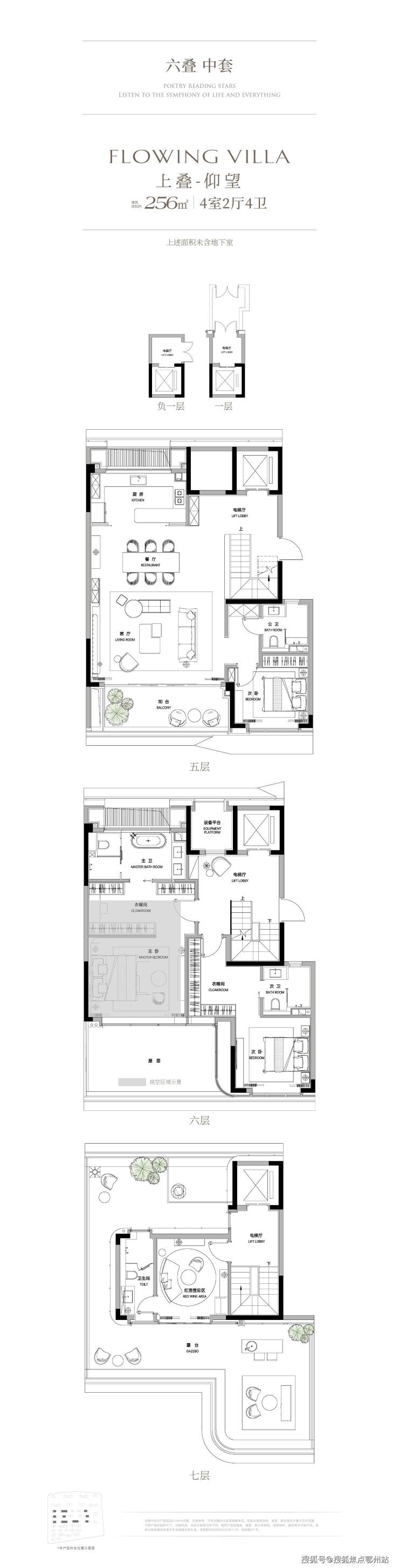 叠墅:29栋,5-7层,面积219-390㎡,层高3.3米,下叠花园最大达130㎡