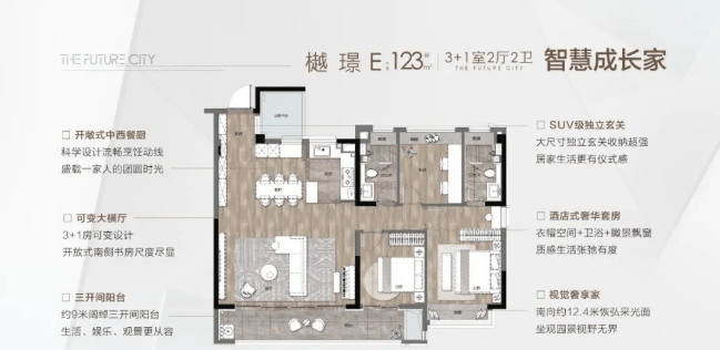 精装标配:美的智能家居、COLMO高端厨电、中央空调+地暖+新风