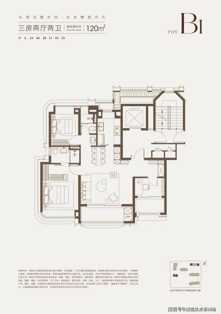 建面约120平三房B1户型图