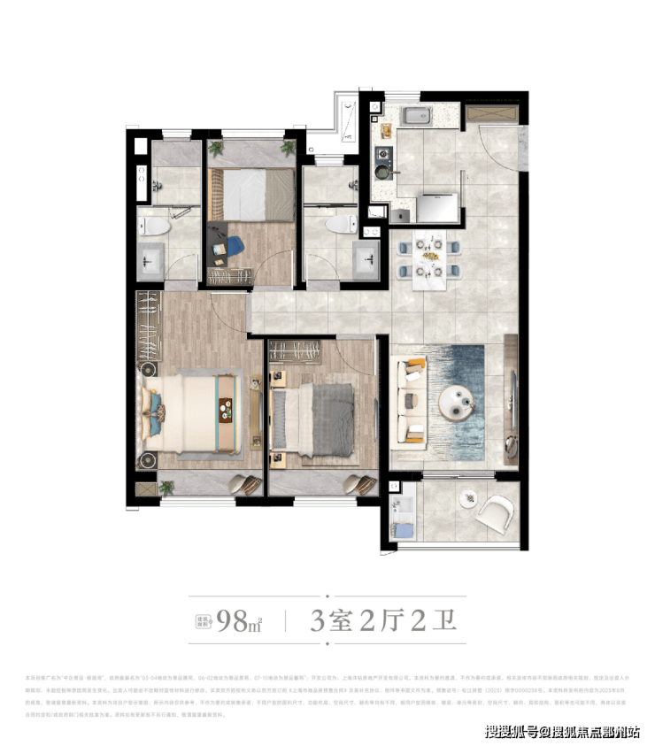 约98㎡3房2厅2卫(92套)