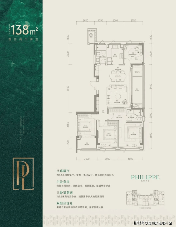建面约138㎡是全明边套,三面采光,270°环绕视野。配上约6.4米横厅与大阳台,像一块被阳光浸透的生活幕布,日常就很有度假感。