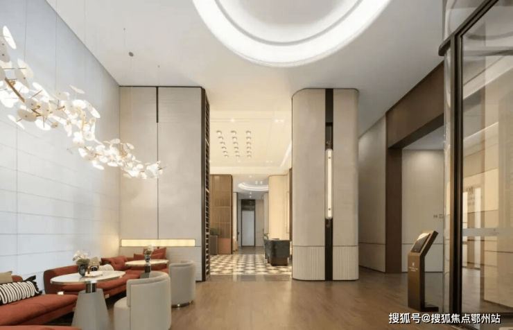 虽然体量不大,却舍得铺排气场。它定制了 璞丽酒店式的长廊门庭,别的楼盘在拼门头宽度,它在营造归家的“纵深仪式感”。
