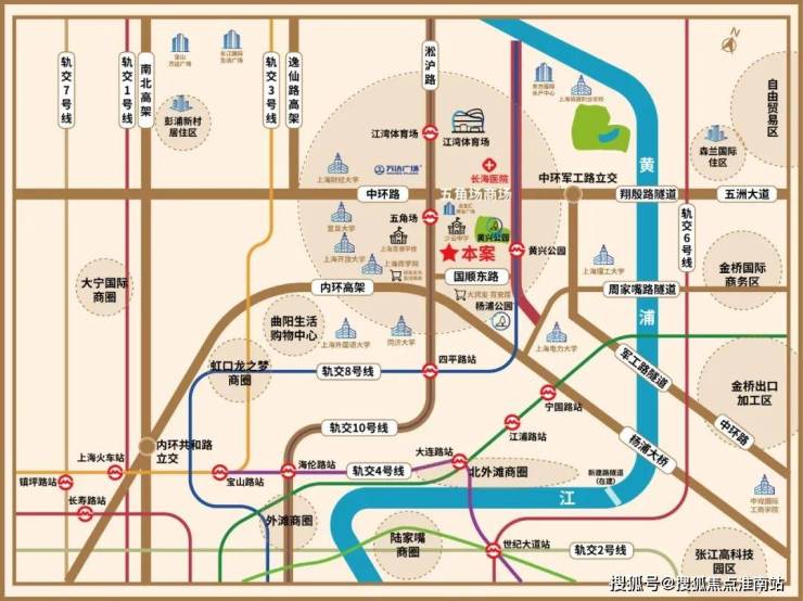 交通: 靠近内环、中环,大连路隧道,自驾出行可便捷到达浦东机场,虹桥机场,上海火车站以及全城各大繁华商圈。项目距离10号线五角场路站900米,8号线黄兴公园路站1.5公里(数据来源于百度地图)。
