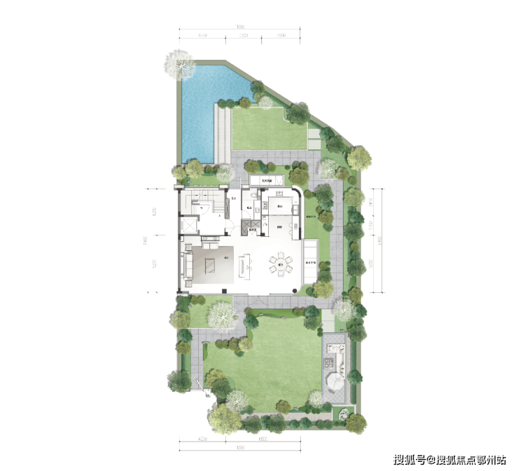项目择址鉴湖旅游度假区柯南大道与育才路交叉口,依托三水围合生态,借鉴 湄南河四季酒店景观理念,打造约 3.8万㎡低奢酒店式园林。