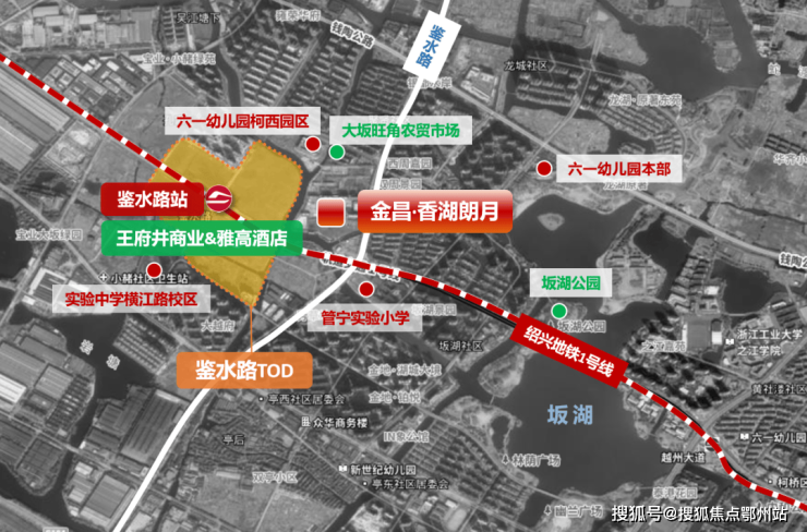 金昌香湖朗月,踞守鉴水路TOD正席,直线距离绍兴地铁1号线鉴水路站仅约300米。