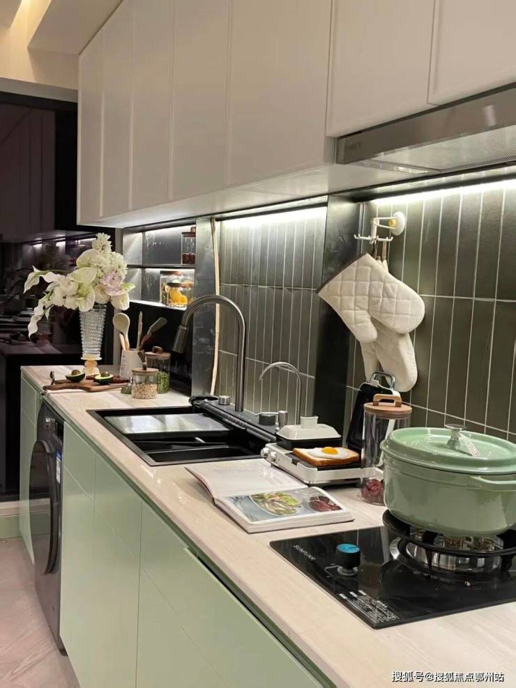同步公开的建面48㎡纯新样板间,以年轻人喜欢的亮色系为主, 大面积落地窗+开放式厨房+极致收纳空间, 民水民电,还通燃气,使得日常居住实用性非常强。