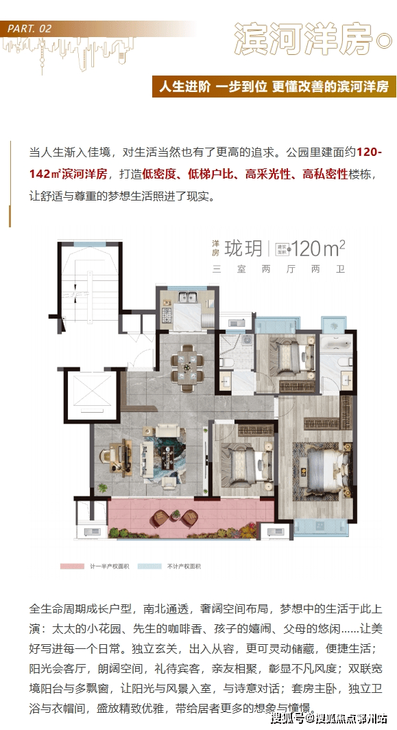 如果说丰富的景观资源是6#楼的核心价值,那么其建筑面积约120㎡的舒居户型,就是打动客户的“杀手锏”。合理的动线布局,阔绰的空间尺度,无不将“舒适”两字演绎的淋漓尽致。