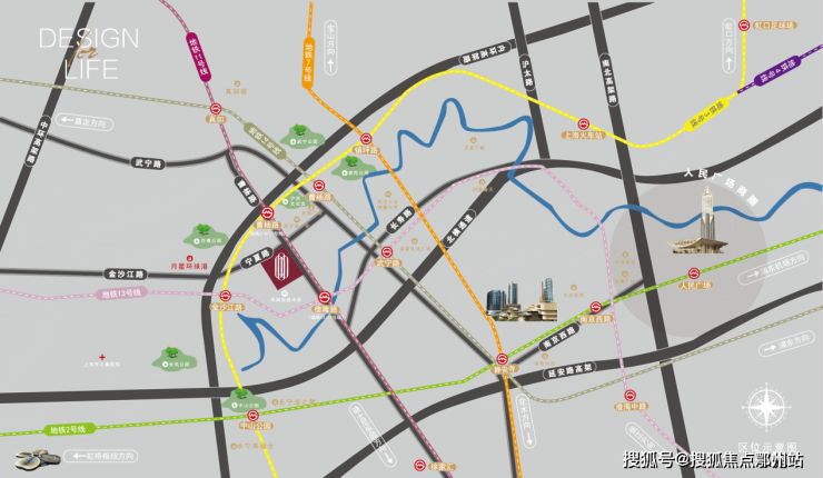 周边约1km范围内,扎堆聚集了6条轨交——3/4/7/11/13/14号线,项目距离曹杨路站约200米,3站直达静安寺、5站人民广场!这样密集的轨交分布,从某种程度上来说,也是区域繁荣指数的反映!