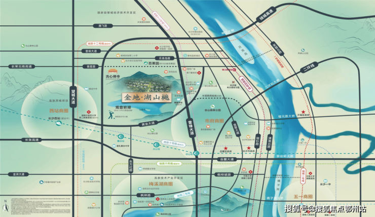 金地·湖山樾位于长沙湘江新区,观音岩湖岸一线,坐拥湘江新区与高铁西的地脉价值,享 交通、商业、教育、医疗、生态等城心资源配套。