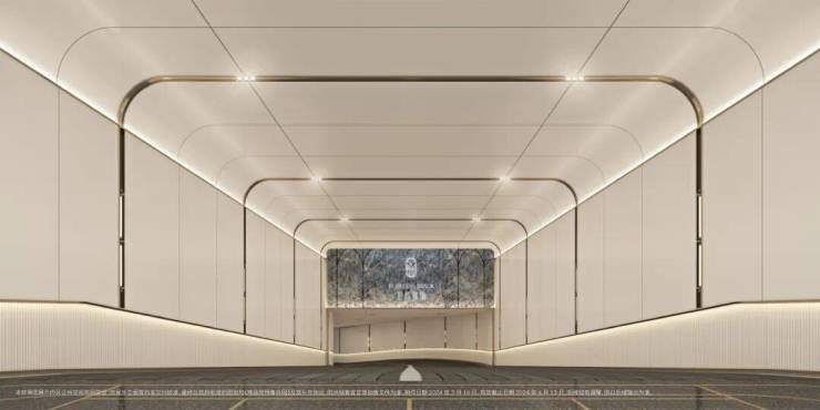 招商臻境,车行入口同样花了极大的心思进行雕琢。相比较市场普通的墙面漆,整个入库车道采用了难得一见的全铝板吊顶与通铺,配合追光式的灯带设计,车辆缓缓驶入,铝板的高级质感与柔和追光的仪式感一点点打开。