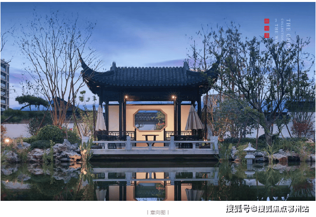 建筑风格:中式合院,以黑、白、灰、栗色为主色调,江南坊巷布局,手工打造戗角飞檐、花街铺地等传统元素