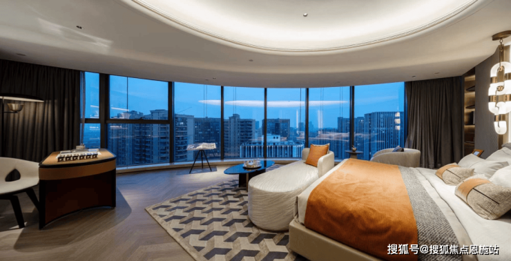 每户都是270°流线形平面,超宽屏采光,拥有比矩形更大的入光面,就像是安藤忠雄理想中的“光之屋”照进了现实,空间的每一处都盈满自然光线。