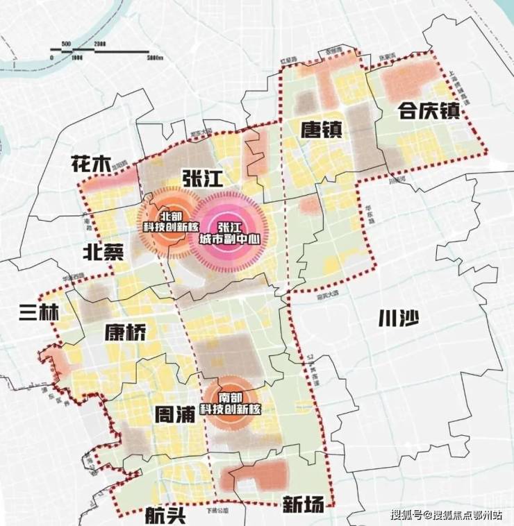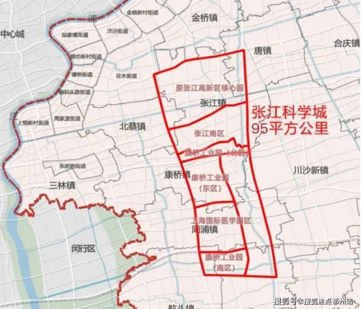 到2021年,张江的一个重要举动,终于让唐镇“名正言顺”——张江科学城从95平方公里扩展至220平方公里,形成“一心两核、多圈多廊”布局,唐镇直接进入张江版图。