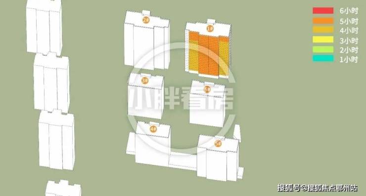 分析结果是这样:计算已考虑周边所有建筑的影响,结果表明南边住宅不会对本次开盘楼栋产生遮挡,楼栋仅受地块内部影响。(说明:本文日照数据基于公示规划图纸文件,使用专业制作工具完成,仅供参考)