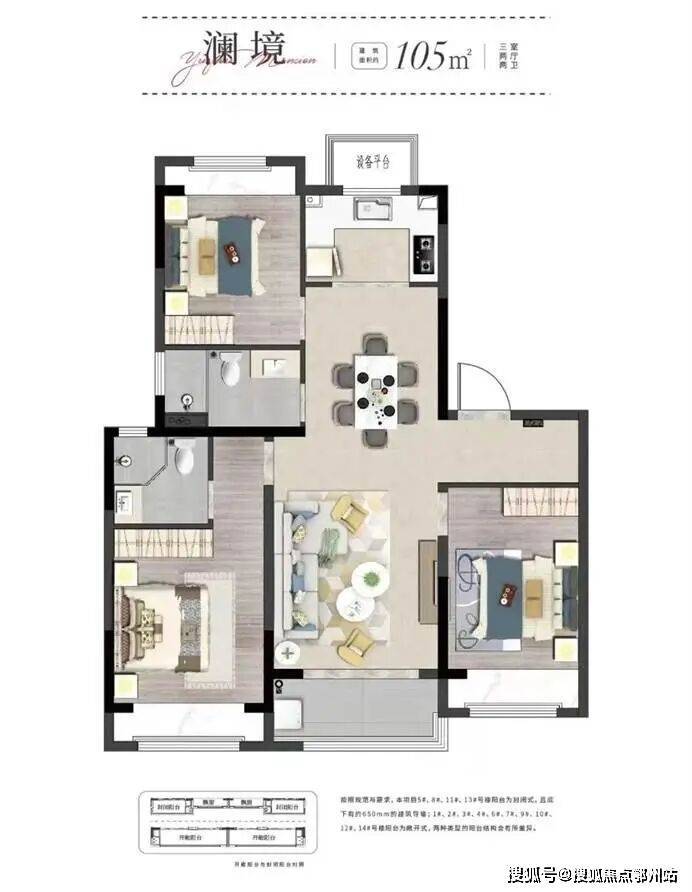 建筑面积约105㎡三房的户型不仅利用率高,升级的细节也是非常多。