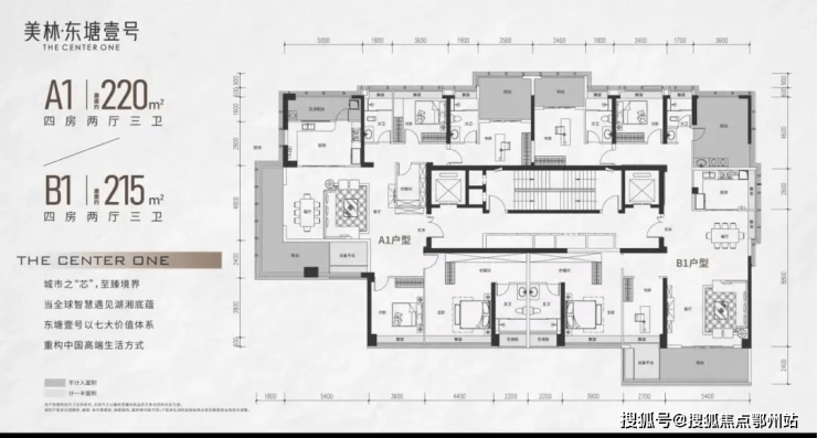 项目总建面约5万方,包含1栋超高层、小洋房,主推约215-260㎡健康科技精装大宅,新规户型得房率均超100%↓