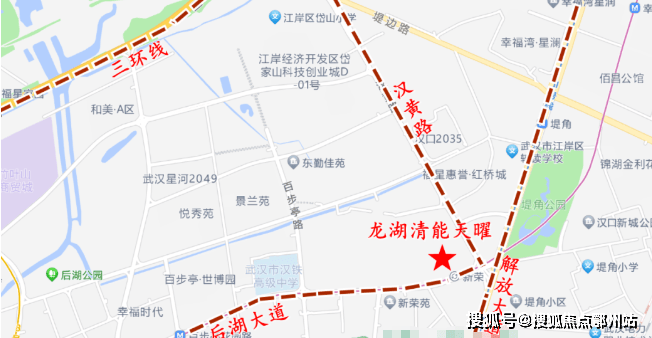 龙湖清能天曜位于后湖大道与解放大道交汇处以西,1号线和21号线新荣站旁,楼市上属于东后湖板块,行政划分属于江岸区,距离三环线2公里,距离二环线2.4公理,属于2.5环。