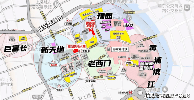 六期距离老西门站最近,自身包括一栋180米的超高层住宅以及一大片低密度的历史保护别墅区。此外,该项目还包括商业设施,如沿西藏南路布局的商业,以及与新天地太平洋商业中心相连的商业中心,便捷性较强。