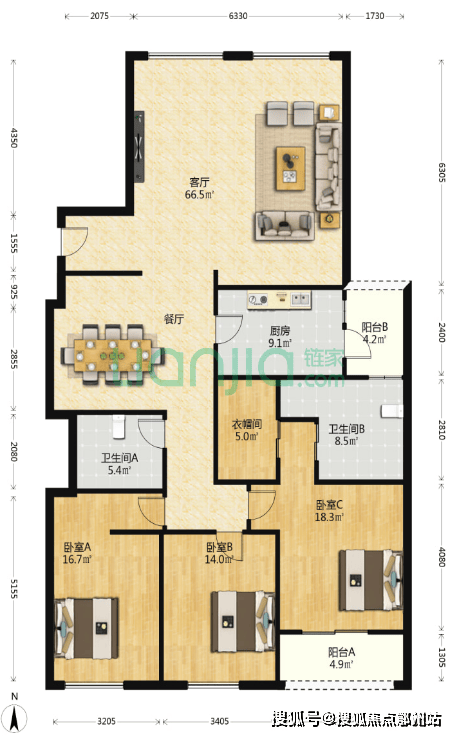 翠湖五期建面约235.58㎡3房2厅2卫户型图