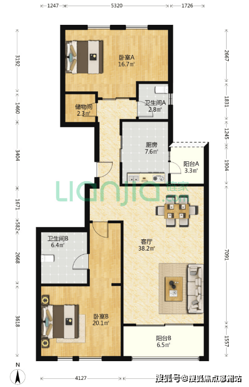 二期御苑目前主力挂牌的是140㎡左右的户型,格局和一期差不多,也是南北通两开间朝南,但功能性只有2房,尺度很阔绰,舒适度较高。