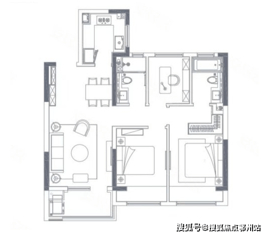 项目本批次房源备案的房屋套型一共是2种,即,3房2厅2卫、4房2厅2卫: