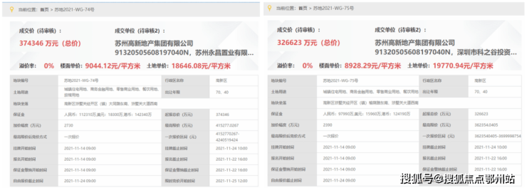 苏地2021-WG-74号地块,以底价374346万元成交,楼面价9044元/平;