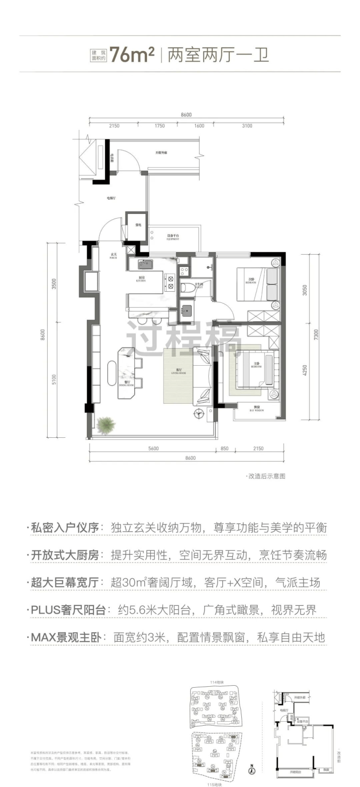 断货76㎡灵动三房,超30㎡奢阔厅域,客厅+X空间,约5.6米大阳台,阔享奢尺三房;