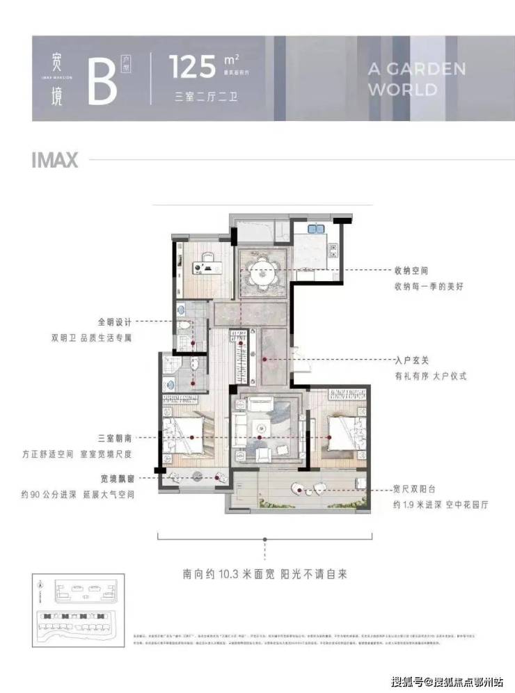 约7.9米长、约1.9米宽的双联阳台,搭配落地玻璃,不仅能满足业主洗衣晾晒、储物收纳的功能,还能满足业主对“花园”的向往。