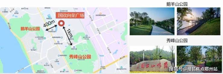 距离1155亩的鹅羊山森林公园东门入口约400米,距离600亩的秀峰山公园1公里,步行距离约10分钟,距离湘江风光带2公里,处在秀峰山公园、鹅羊山公园、湘江风光带环绕当中,得天独厚的外部环境,形成本区域的天然生态氧吧。