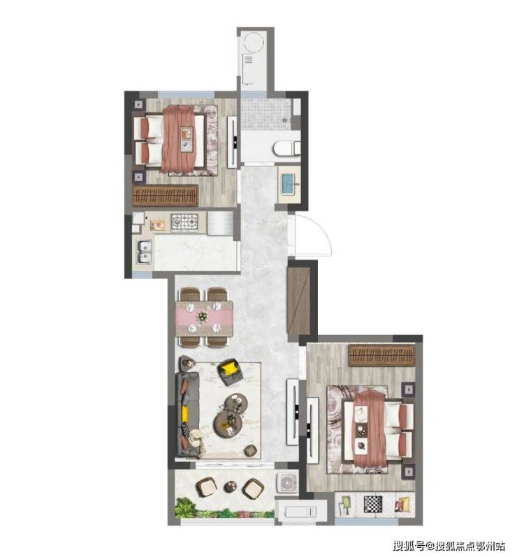 户型方正, 客餐厅南北向一体并外接观景阳台 ,让家人在用餐时还能坐享四季美景; 北面的静谧空间 可做次卧,也可以打造成书房, 一室多用。