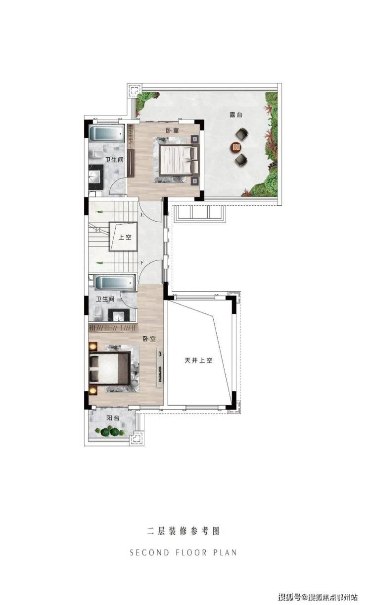 如果说对生活美学的不断迭新是一种追求,那么对生活方式的考究则是对购房者的态度。延续传统别墅的前庭后院的设计优点,实现室内空间三面采光,创新性的将入户方式设计为中庭入户。