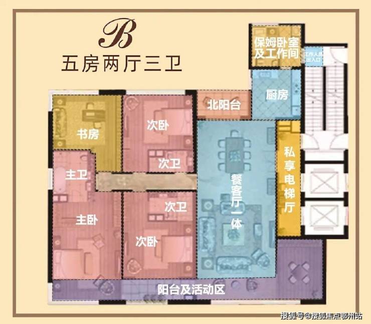 建面约300㎡的大平层,五室两厅三卫, 两梯两户,双开门式电梯,独立入户空间,将仪式感拉满。 近20米南向采光,在里面跑步都不在话下。南北双阳台, 超大横厅,直面太湖广场,低头俯瞰,满眼绿意。