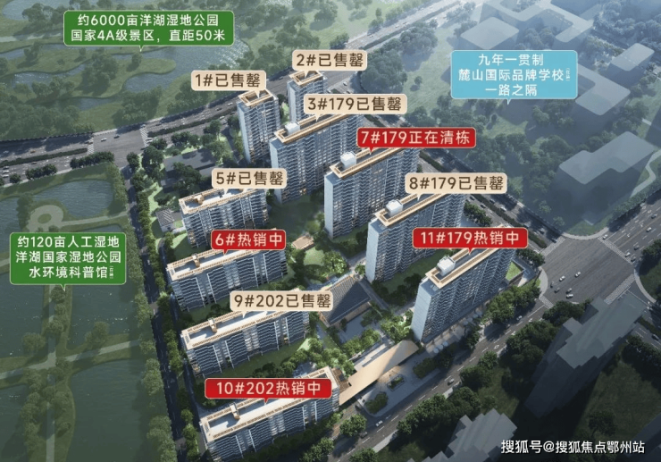 项目北面公园、西面120亩人工湿地、东面学校,是洋湖板块在售楼盘中少有三面均无遮挡的小区,采光、日常、视野绝佳。