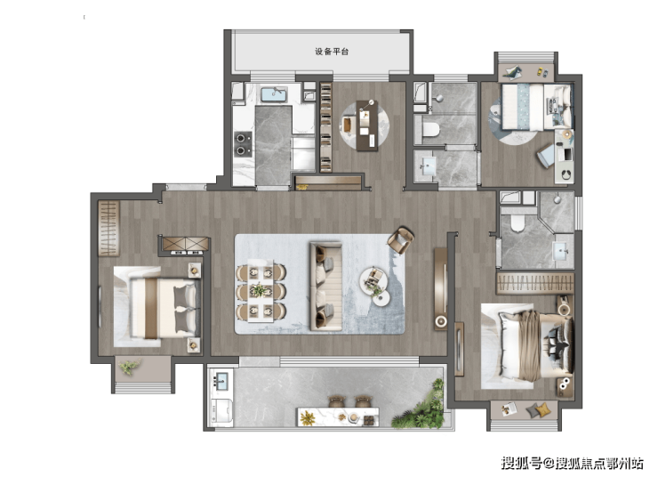 还有豪华套房式主卧,舒适度与私密性兼具,生动诠释了高阶改善当有的舒适和体面。
