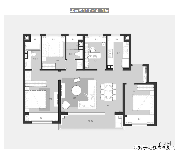 建面约117㎡3+1房