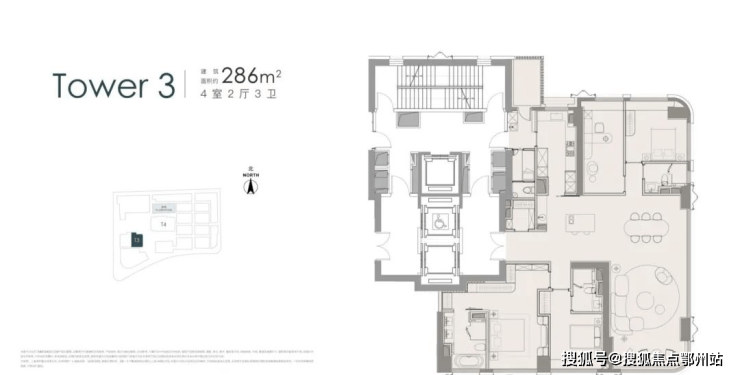 金陵华庭体量 高达约67万方,远不止四栋塔尖住宅,而是形成了商住办综合性的整体开发,是一个超级城市综合体。