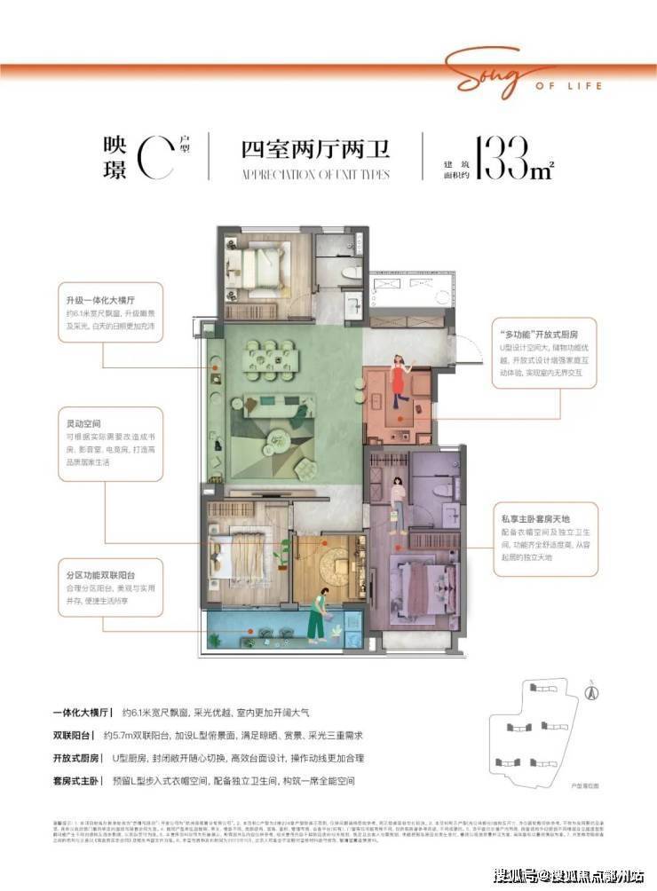 户户阔绰大开间、LDK一体化、开放式厨房与南向双联阳台,再加上三分离次卫空间、洗手台“玄关化”、套房主卧等,给到业主更具仪式感的美好体验和尊重。