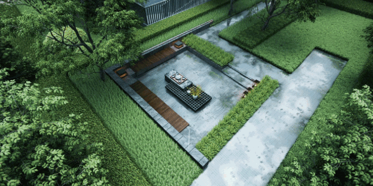 不仅如此,为保持社区内外景观连贯性, 和月泊庭连红线外的市政景观,也一并考虑在内,无缝连接古城绿化带空间,使景观得到延伸,打造了互动现代感街区。