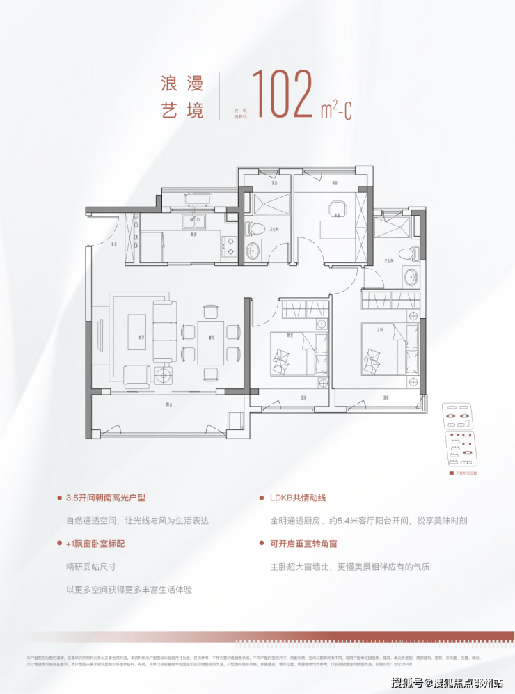 金融街美兰金悦府这次的三房分别做了建面约89m²和102m²的两种户型,各有特色。