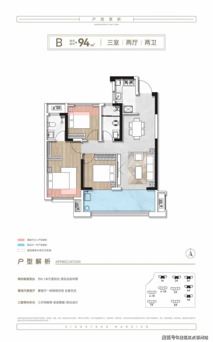 户型方面,约94-129㎡三房、四房,全系多元户型选择。