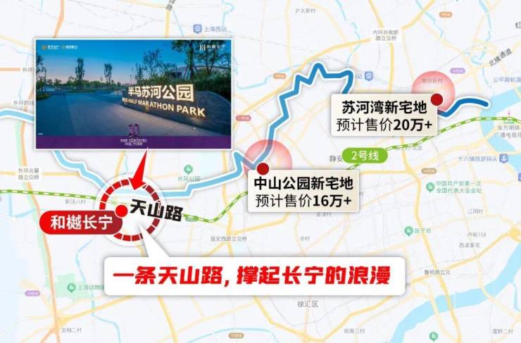 更重要的是,同样2号线+苏州河的组合,未来新房基本都是天价,中山公园地王预计16万/㎡,苏河湾地王预计20万/㎡朝上,反观即将认购的和樾长宁只有13万+,肉眼可见的成长空间不言而喻!