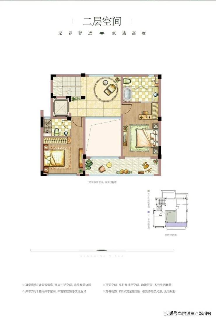 二层私密生活起居区,采用 多套房式设计,为每一个家庭成员的奢阔隐私生活带来无限可能。