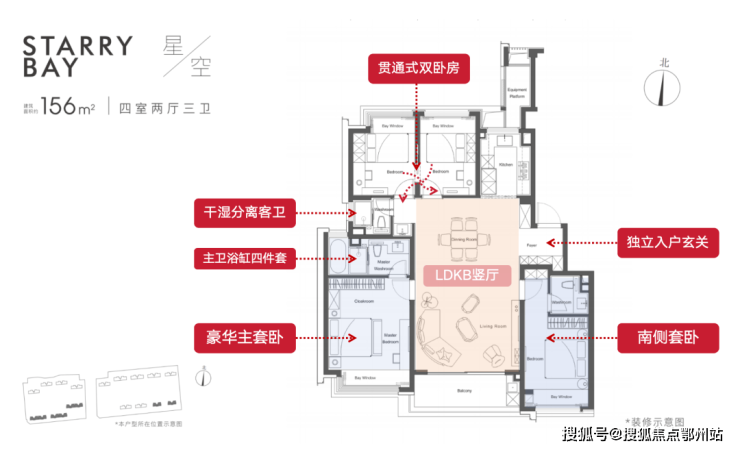 出乎意料!仁恒滨湖湾约156㎡的户型,做到了双套房,三卫生间配置。功能性拉满了~