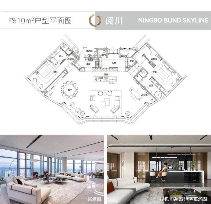 建筑面积约610㎡,户型风格以宁波海上丝绸之路为设计理念,冠以瓷、丝、茶、玉为设计脉络进行设计,35米景观展开面,感受270度景观视角,以无遮挡的设计使视野最大化,云端谈笑,俯瞰城市繁华。