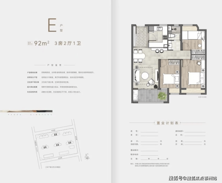 从设计方案分析来看,项目主力户型预计为99㎡左右的3房,大户型分布在2#的东西边套,3#3梯6户,为小户型,可售商品房约402套左右!