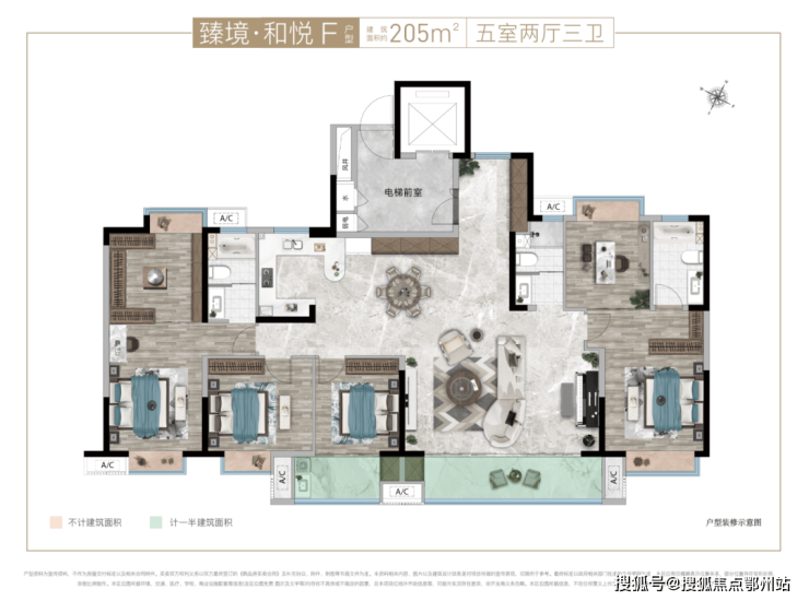 五开间朝南 | 一梯一户 | 奢阔横厅 | 双主卧套房
