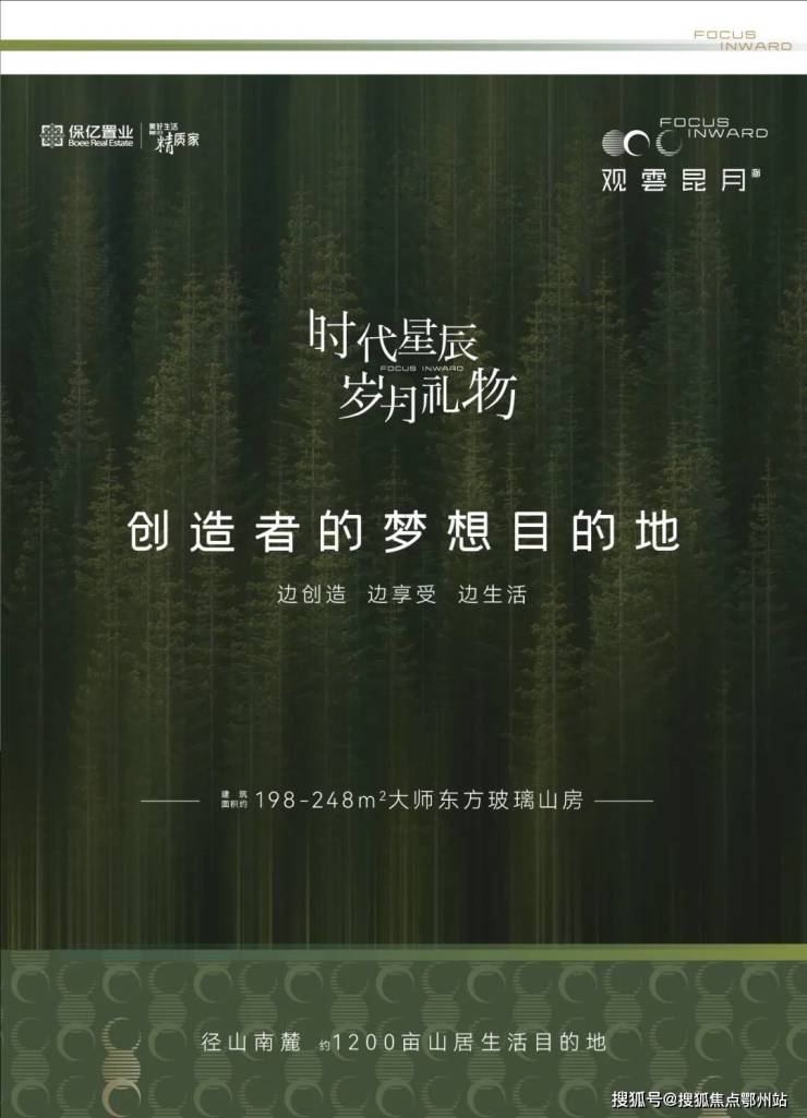 观雲昆月城,臻选杭州同城山水径山南麓贵脉,以群山溪谷为底色,拥揽城西科创大走廊高端配套资源,营造约1200亩中国新山水人居大境,为中国高净值人群营建一个全天候、全域化生活目的地,能满足创造者们全生命周期生活需求。又以东方人居意境的当代重构,采用依山就势之法,将一座座“玻璃山房”自然挥洒于山岭之间,营造一方建筑、山水与心灵的自然合一之境。每一栋皆定制、每一境皆不同,未来山居盛邀时代创造者,观雲揽月。