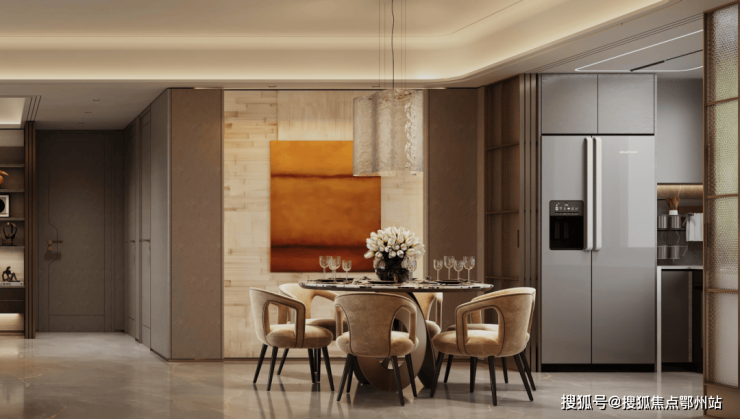 比如,采用了 摩根声光电全屋智能,带给业主全新的智能生活体验。 大面积岩板背景墙审美在线。